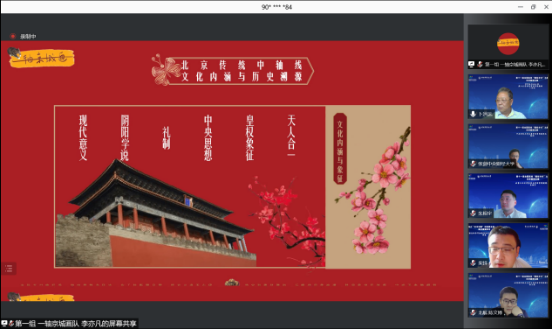 “一轴京城画队”由北京市“十四五”规划引入,通过追溯背景中轴线的文化内涵以及调查分析中轴线沿线街道现状的优势与问题所在,提出如何避免中轴线上街道陷入旅游商业化的恶循环的具体措施以及推动中轴线申遗进程的建议;并在评委老师的引导下将中轴线文化概括为庄重、严谨有序、中庸。“龙马厚生队”以全国和北京的政策导向为背景,从供应方式创新角度详细分析了“作价出资”出现的必要性,并采用问卷调查和深度访谈相结合的方式调研实践,提出对北京市“三城一区”产业用地弹性供应和政策的创新优化;并回答了评委老师关于理论来源的问题。“梦之队”从“边角剩余”空间出现的背景与意义出发,分析典型案例,深入研究相关理论,同时实地调研,采访专家,提出了健康中国战略下北京城市“边角剩余”空间的体育化,还指出了未来发展的方向和可能会遇到的问题;并回答了评委老师关于”剩余空间“改造标准的问题。“津门不锈钢队”以天津市老旧厂房改造为例,通过分析问题源流与政治政策,辨析数字孪生与城市更新的概念,提出解决构建应用平台的解决思路,分析“巧夺天工”平台运行逻辑,对平台工作机制进行剖析,明确其六大功能,完善了城市更新背景下老旧工业区转型策略;并回答了评委老师关于老旧工业区改造转型路径和商业价值如何体现的问题。“京生盎然队” 切实关注北京市人口政策,为北京市和中国的发展贡献青年思考和青年力量。他们通过线上发放定向问卷,线下对母婴室使用情况进行实地调研等,对北京市三孩政策的贯彻落实方法做出了思考与研究。“C位出道队”对北京市面向碳中和的经济转型模式构建进行了研究,在国家宏观政策和北京市相关政策双线并行的情况下,通过对国内外案例梳理,构建出了北京市面向碳中和经济转型的“IDEAL”模式及政策建议。“减减单单队” 聚焦教育双减政策,关注教育沉疴积弊。他们分析教育减负困境、解读北京市政策,从现状、现象切入,研究北京市双减政策的落实方案,以实际行动助力双减落地,守护新时代学生健康成长。“龙马骋望队”取长补短,借鉴美国和日本的成功经验;校企合作,研究北京邮电大学与中国移动研究联合创新中心的具体案例,提出“一主三翼”创新概念及建议,助力打通科技成果转化的“最后一公里“,探索北京市产学研合作新模式。“智创新区队”秉持“心系民生,智创新区,让百姓生活更美好”的理念,心系基层民生,通过文献研究、案例研究等方法,基于多元治理理论和新公共服务理论,研究了基于社区治理创新的北京市老旧小区改造的问题。