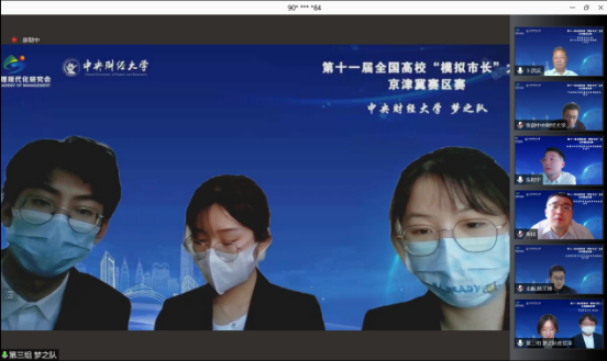 2021年11月14日下午14:00,第十一届全国高校“模拟市长”大赛京津冀赛区决赛以线上方式举行。本次京津冀赛区赛,吸引了来自京津冀地区11所高校近50支队伍报名参赛。经过专家组多轮严格审核,最终9支队伍入围决赛,会师云端。