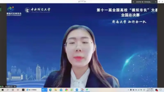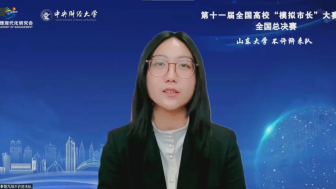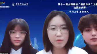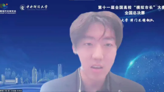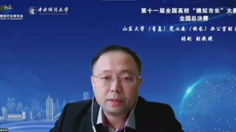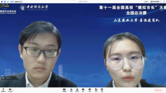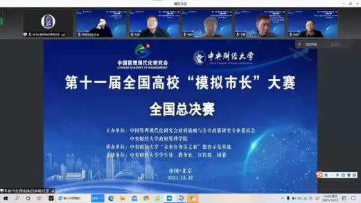 2021年12月12日下午,第十一届全国高校“模拟市长”大赛全国总决赛以线上方式举行。全国高校“模拟市长”大赛是由中国管理现代化研究会政府战略与公共政策研究专业委员会、SUNBET申搏主办,SUNBET申搏“未来公务员之家”德育示范基地、公共管理研究会承办的全国大学生品牌赛事活动。本届“模拟市长”大赛从今年7月份正式启动,先后举办粤港澳大湾区赛区赛、京津冀赛区赛、山东大学校内赛、济南大学校内赛等,此外,大赛还有全国35所高校近70支自由团队报名参赛,经过层层筛选,最终来自中山大学、南开大学、上海交通大学、山东大学等11所高校的11支团队入围全国总决赛,会师云端!