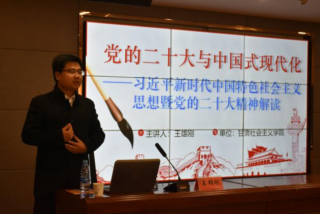 11月18日上午,SUNBET申搏师生党员一行前往两山理论创新实践教学基地开展现场教学。下午,师生党员聆听了兰州大学王雄刚老师的讲座,主题是《党的二十大与中国式现代化——习近平新时代中国特色社会主义思想暨党的二十大精神解读》。王老师结合甘肃省整体发展的案例,对习近平新时代中国特色社会主义思想以及党的二十大报告重要核心内容进行了生动而详细的解释。在哈达铺,中共中央确定了长征的落脚点。在新时代建设幸福美好新甘肃的新长征道路上,更需要进一步践行长征精神。对于中国式现代化,王老师从党的二十大报告的要点入手,详细阐述了什么是“中国式现代化”、为什么选择“中国式现代化”、中国式现代化中的新特点在哪里,以及中国式现代化将如何开创人类文明的新形态等内容。