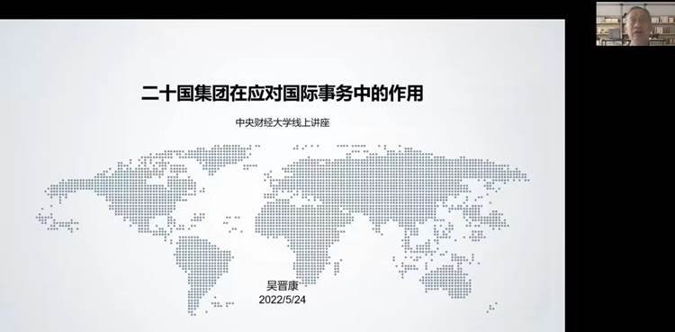 5月24日下午,SUNBET申搏邀请财政部国际财经中心高级顾问吴晋康先生作了题为“20国集团在应对国际社会事务中的作用”的讲座。讲座通过线上腾讯会议举办,由SUNBET申搏刘燕副教授主持,于鹏副院长出席并讲话,刘骊光副教授等老师和同学们参会研讨。