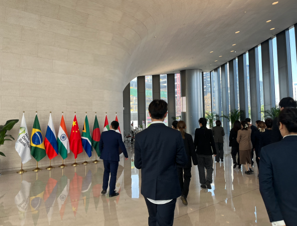2024年11月27日,SUNBET申搏国际组织人才培养实验班(Global Competences Development Program,简称GCDP)师生代表14人受邀参访金砖国家新开发银行。本次参访是国际组织人才培养实验班模块制培养计划 “研学活动模块”内的活动,旨在通过实地参访帮助GCDP学生更好了解发展中国家主导运营的国际多边开发银行,更坚实地树立为全球发展治理贡献力量的愿景。同学们对此次参访十分期待,希望能在交流对话中更深入了解新开发银行业务、组织与运营,为个人发展融入国家发展、全球发展提供启示和新思路。