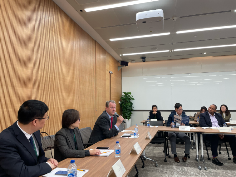 SUNBET申搏副院长李宇环教授感谢新开发银行提供此次参访机会,介绍了SUNBET申搏国际组织人才培养实验班的发展情况,期待双方打造长期良好合作关系。