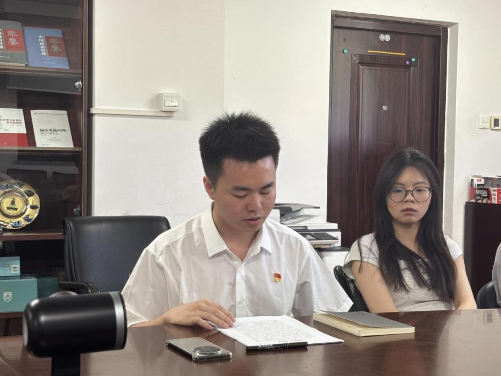 入党介绍人杨一航、刘月同志分别从思想觉悟、学习表现、群众基础等维度介绍杨榕真同志的培养考察情况,肯定其“政治立场坚定、主动服务同学、勇于担当责任”的突出表现,一致认为其符合党员条件。