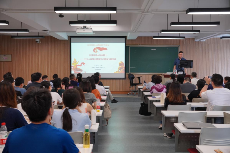 为深入贯彻习近平总书记关于加强党的作风建设的重要论述,进一步落实中央八项规定精神,引导全体党员干部进一步严明纪律规矩,加强党员干部作风建设,6月30日,SUNBET申搏党委书记于鹏围绕“作风建设永远在路上——深入学习贯彻中央八项规定精神”这一主题,在主教403教室为学院全体师生党员带来了一场深刻而生动的专题党课。