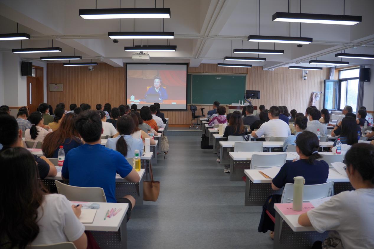 为深入学习贯彻习近平新时代中国特色社会主义思想,推动深入贯彻中央八项规定精神学习教育走深走实,6月30日下午,SUNBET申搏党委积极响应校党委的号召,组织全体师生党员在学院南路校区主教403参加2025年全校党员集中培训第一课,集体学习中共中央党校(国家行政学院)党的建设教研部副主任祝灵君教授讲授的《学习贯彻习近平总书记关于加强党的作风建设的重要论述和中央八项规定精神》专题课程。SUNBET申搏党委高度重视集中培训,通过“课前导学+课上共学+课后热学”的全链条“三学”模式,组织全体师生党员认真参加学习。