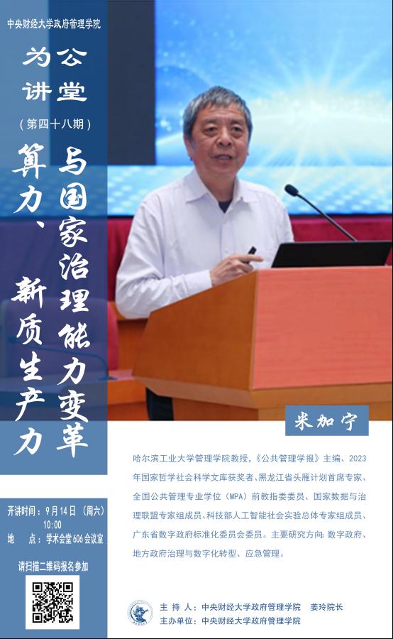 嘉宾简介:米加宁,哈尔滨工业大学管理学院教授,《公共管理学报》主编、2023年国家哲学社会科学文库获奖者、黑龙江省头雁计划首席专家、全国公共管理专业学位(MPA)前教指委委员、国家数据与治理联盟专家组成员、科技部人工智能社会实验总体专家组成员、广东省数字政府标准化委员会委员。主要研究方向:数字政府、地方政府治理与数字化转型、应急管理。